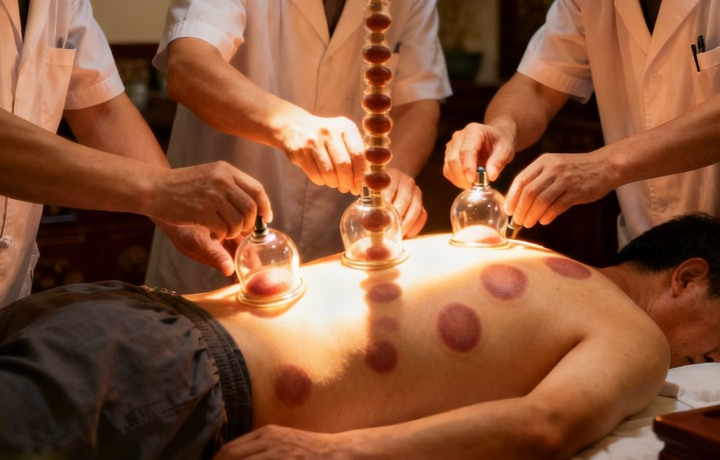 传承罐法配合筋膜枪、红外线烤灯,传承配方产品通过温和渗透方式作用于疼痛部位,不刺激皮肤,不损伤肌理